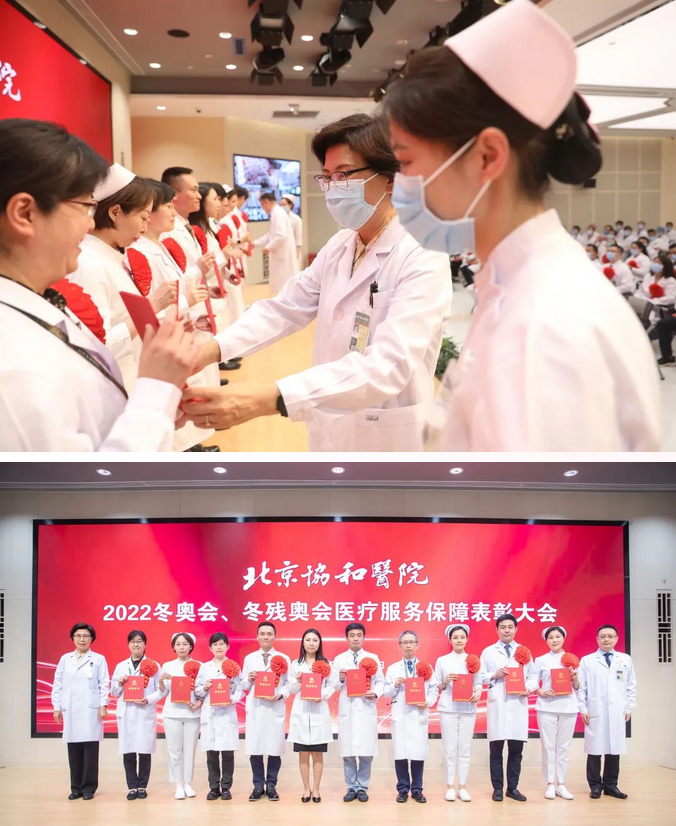 党委书记吴沛新代表医院党委宣读表彰决定。在以习近平同志为核心的党中央坚强领导下,2022年北京冬奥会、冬残奥会成功举办,奏响了和平、团结、进步的时代强音,凝聚起一起向未来的澎湃力量。作为北京市冬奥会、冬残奥会保障定点收治医院,医院高度重视医疗保障工作,严格选拔128名技术精湛的医务人员,组成冬奥会、冬残奥会医疗保障团队,承担冬奥会、冬残奥会医疗保障各项任务。为表彰冬奥会、冬残奥会医疗保障团队取得的优异成绩,经党委常委会研究决定,授予史迪等128名同志“北京协和医院北京2022年冬奥会和冬残奥会医疗服务保障突出贡献奖”。