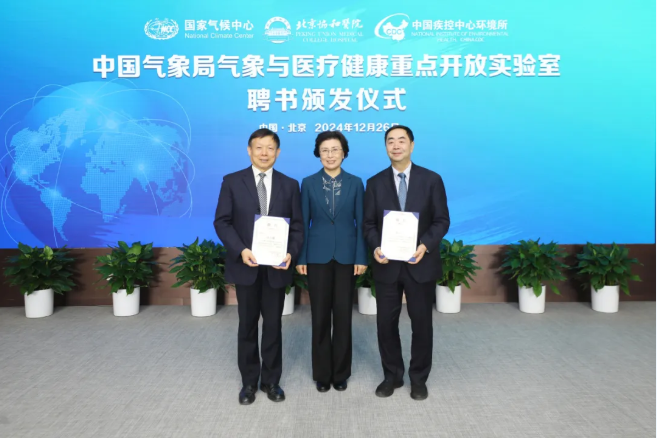 2024年12月26日,中国气象局气象与医疗健康重点开放实验室(下称“实验室”)成立大会暨学术交流会议在北京协和医院举行。近年来,气候变化日益成为人类面临的重要公共卫生难题。党的二十届三中全会《决定》提出,要“实施健康优先发展战略,健全公共卫生体系,促进社会共治、医防协同、医防融合,强化监测预警。”为积极应对气候变化给人类生命健康带来的威胁与挑战,2024年6月24日,北京协和医院作为主要依托单位,联合国家气候中心、中国疾病预防控制中心环境与健康相关产品安全所(下称“环境所”)获批组建中国气象局气象与医疗健康重点开放实验室。该实验室是中国气象局设立的国内首家省部级医疗健康与气象环境交叉学科领域的科研创新平台,对于推动气候变化健康适应国家行动具有开创性意义。